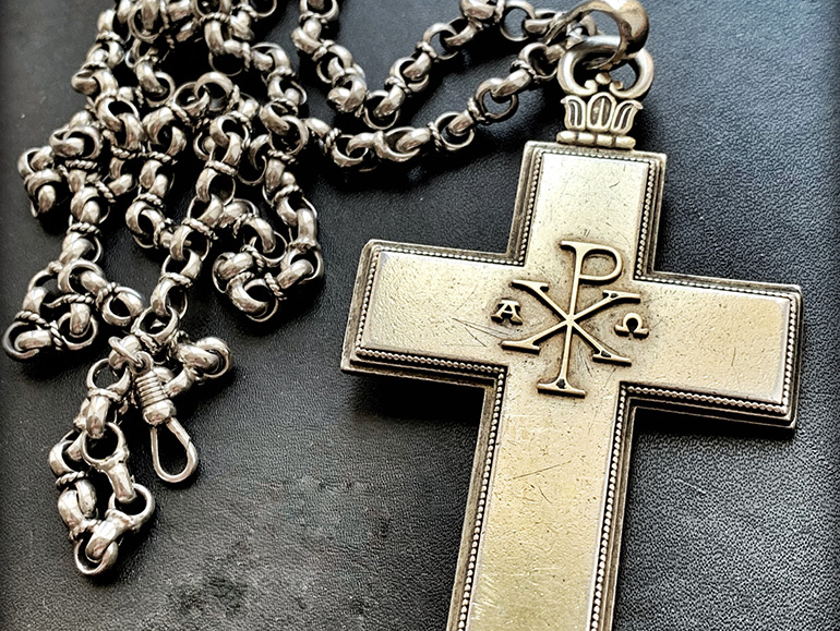 Der neue Propst Joachim Lenz hatte seine 14-tägige Quarantänezeit in der Propstei hinter sich gebracht und konnte so den Dienst als Pfarrer der Gemeinde und Propst mit dem Gottesdienst antreten. Er übernahm das Amtskreuz aus der Hand von Frau Koster, also von der Gemeinde.