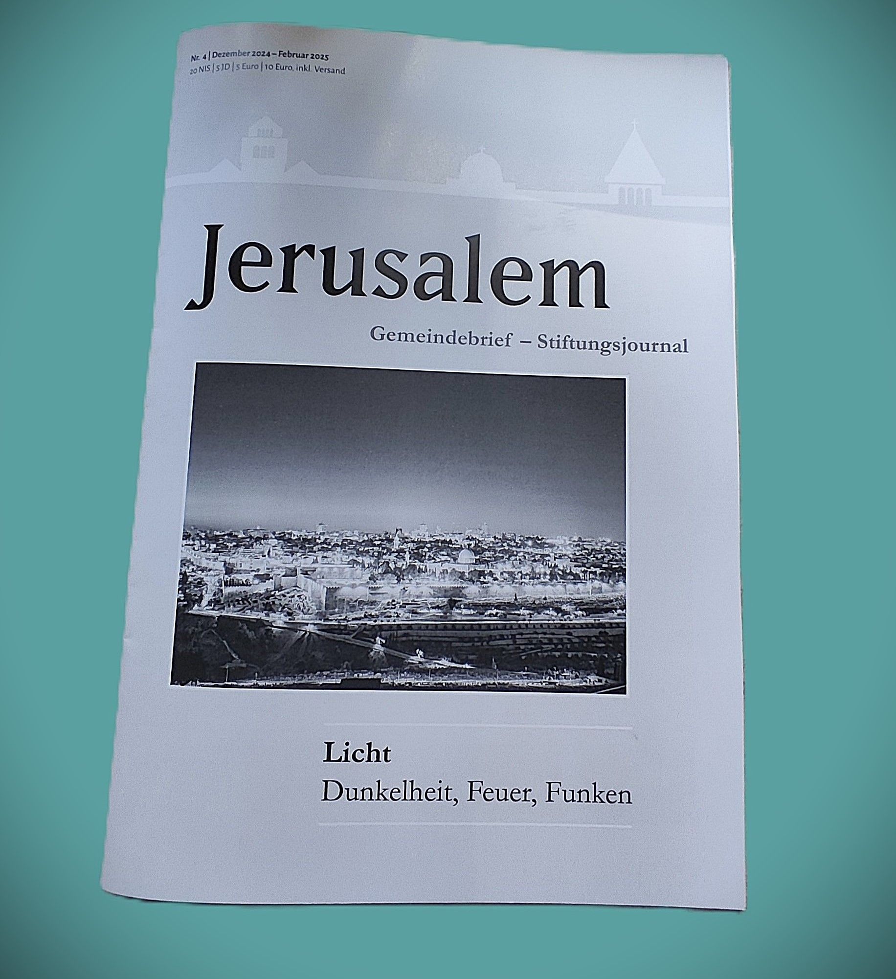 Viermal jährlich erscheint der Gemeindebrief der Evangelischen Gemeinde, in dem das „Stiftungsjournal“ des Deutschen Evangelischen Instituts für Altertumswissenschaft des Heiligen Landes (unser DEI auf dem Ölberg) enthalten ist. Die vier Ausgaben kosten jährlich 40 Euro für die gedruckte Ausgabe inkl. Versand oder 10 Euro für die E-Mail-Version. Mitglieder des Freundeskreises unserer Gemeinde erhalten den Gemeindebrief kostenlos.