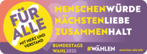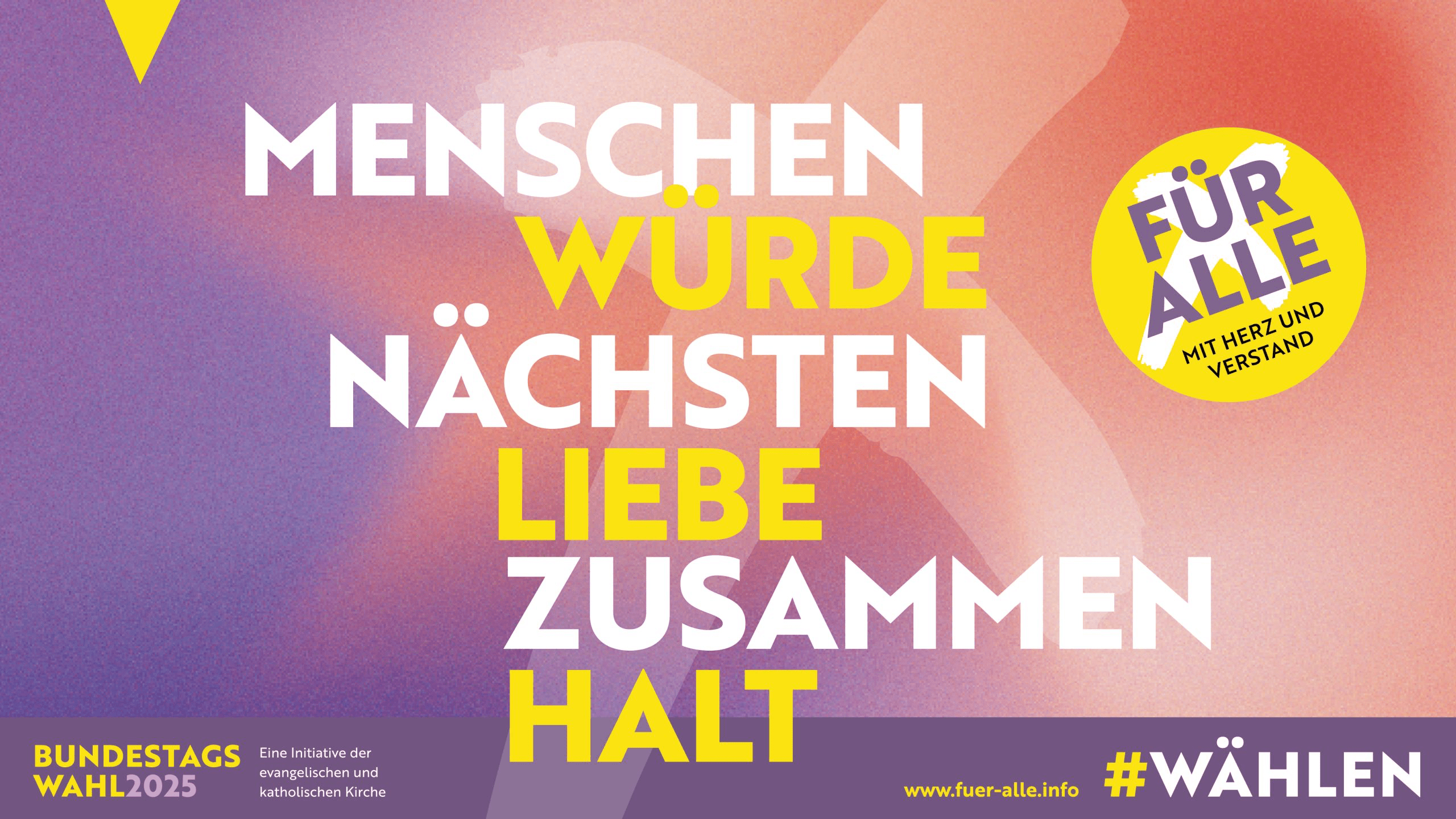 Die evangelische und die katholische Kirche laden ein, die demokratischen Wahlen zum deutschen Bundestag zu nutzen und wählen zu gehen:: https://fuer-alle.info/.