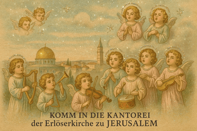 Wir laden herzlich ein: Heiligabend: Mittwoch, 24.12.2025 16.00 UhrFamiliengottesdienst zum Heiligen AbendMit Pfarrerin Ines FischerHimmelfahrtkirche auf dem Ölberg 17.00 UhrInternationaler Gottesdienst in Bethlehemin arabischer, englischer und deutscher Sprachemit Bischof Dr. Sani Ibrahim Azar, Rev. Ashraf Tannous und Propst Joachim LenzLutherische Weihnachtskirche, Bethlehem 20.00 UhrGemeinde-Abendessen für die, die sonst allein wärenInformationen und Anmeldung im Gemeindebüro, propstei@evajerusalem.orgRefektorium …