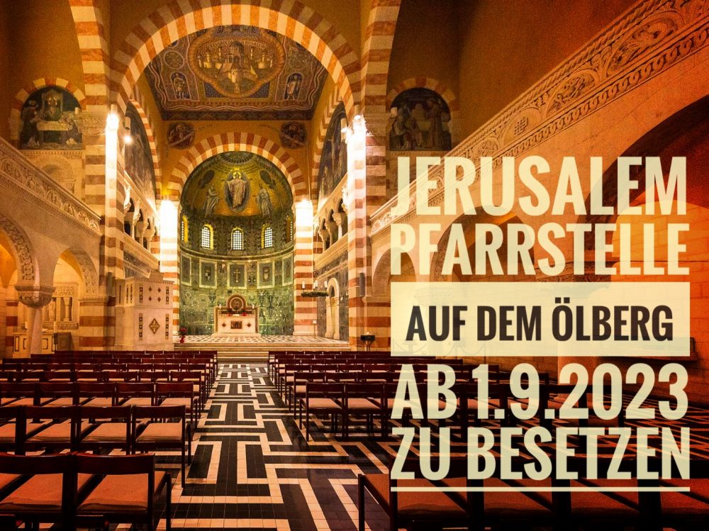 Die Evangelische Jerusalemstiftung der EKD und die Evangelische Gemeinde deutscher Sprache zu Jerusalem suchen für die Zeit ab 1. August 2026 einen Propst, eine Pröpstin oder ein Propstpaar. Bewerbungen sind bis zum 15. Oktober 2025 an das Kirchenamt der EKD zu richten.Auf die Webseite der EKD gibt es Informationen zu Aufgaben, Anforderungen und Konditionen: https://www.ekd.de/Jobborse-36.htm?jobid=334396&start=9&dist=30&churches1=132&searchtab=foreign-countries