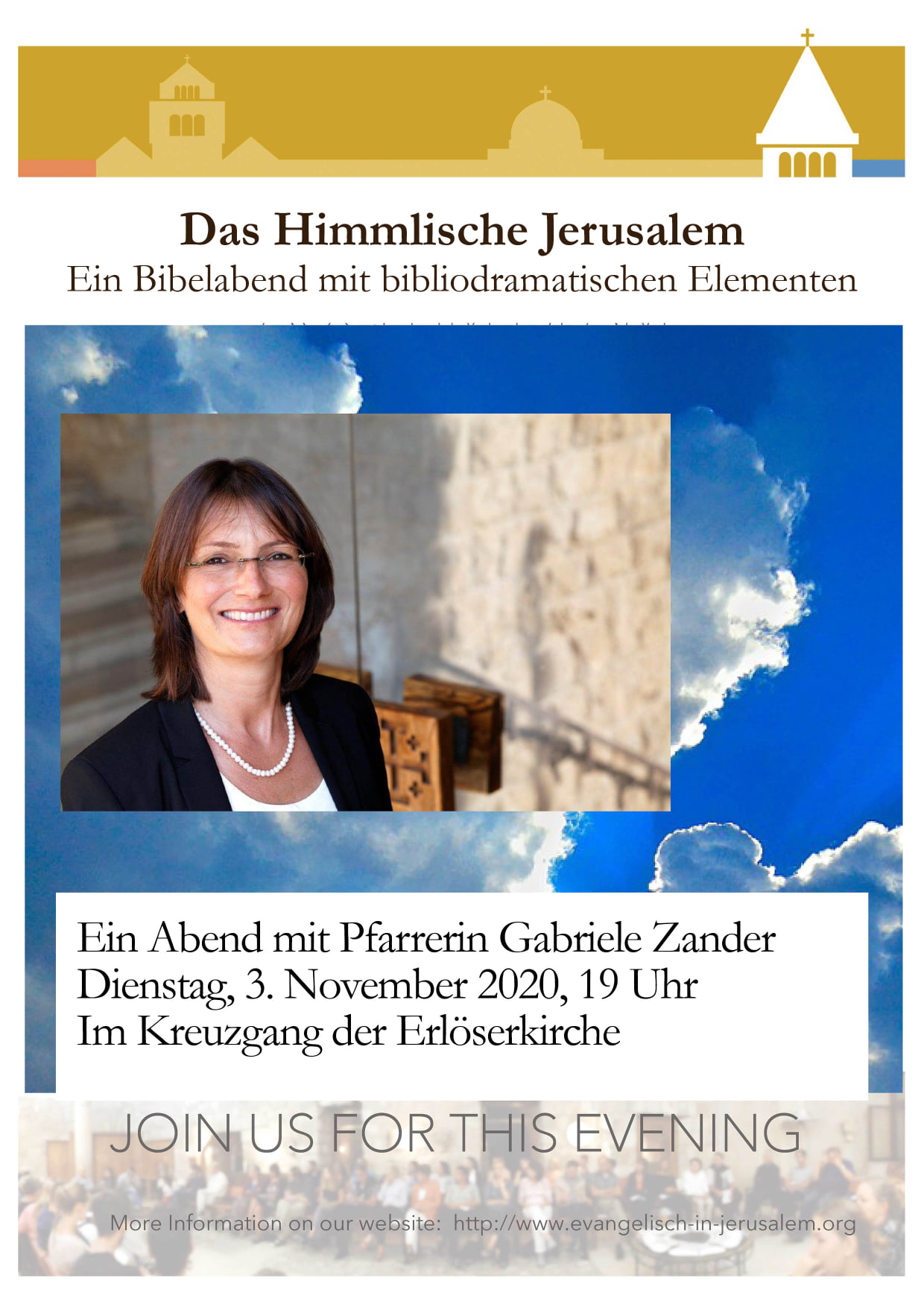 Mo, 01.11.12.00 Uhr Führung in Yad VashemTreffpunkt: 12 Uhr an der Straßenbahnhaltestelle Damaskustor oder 12.45 Uhr Yad VashemKosten: 25 NIS für Volontär*innen, 40 NIS für Verdienende und für alle 12 NIS für die StraßenbahnBitte Anmelden unter: office@avzentrum.de Mi, 03.11.17.30 Uhr Taizé in der HimmelfahrtkircheAnkommen – Hören – Singen – Beten„Pre“ Afterwork – Ansingegruppe, Instrumente sind …