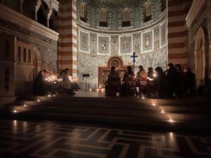 Mi, 02.07. 17.30 UhrTaizé-Andacht in der Himmelfahrtkirche: Singen – schweigen – betenMit Pfarrerin Ines FischerIm Anschluss: Beisammensein mit Abendessen im Café Auguste Victoria.Himmelfahrtkirche und Café