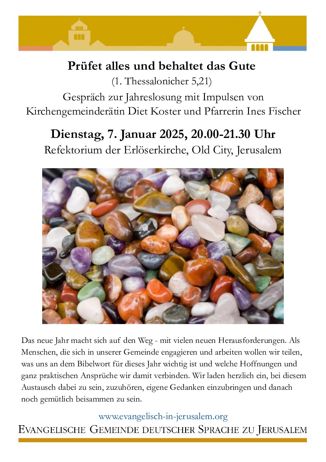 Gottesdienst mit Abendmahlsfeier in der Erlöserkirche, Altstadt von Jerusalem Predigt: Pfarrerin Ines FischerMusik: Kirchenmusikdirektor Peter-Michael Seifried