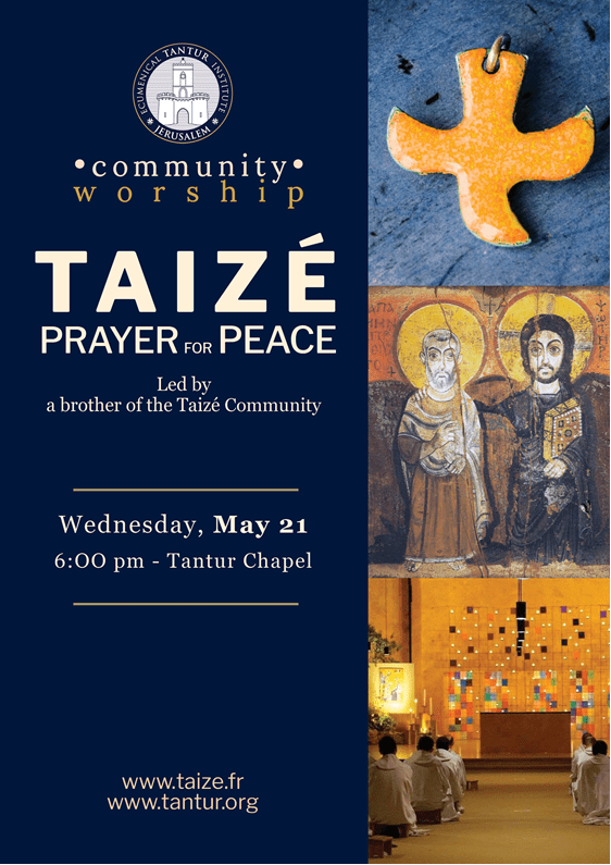• Unser Mittwochs-Taizé-Gebet in der Himmelfahrtskirche verlegen wir an diesem Mittwoch, 21. Mai, nach Tantur.