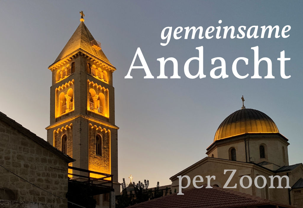 Wir laden ein zur Andacht per Zoom — aus der Erlöserkirchengemeinde zu Jerusalem, mit Menschen im Heiligen Land und in Deutschland und anderswo.