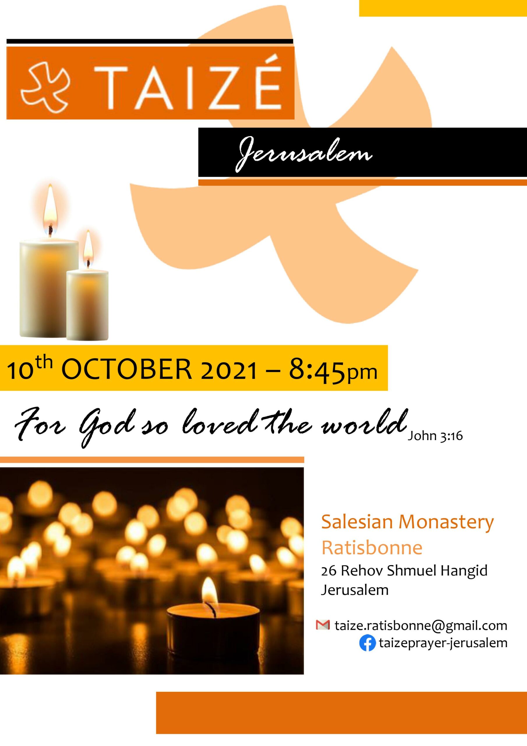 We invite you to meet again Sunday 10 October at 20.45 in the church of Ratisbonne Monastery (rehov Shmu’el Hanagid, 26 Jerusalem).