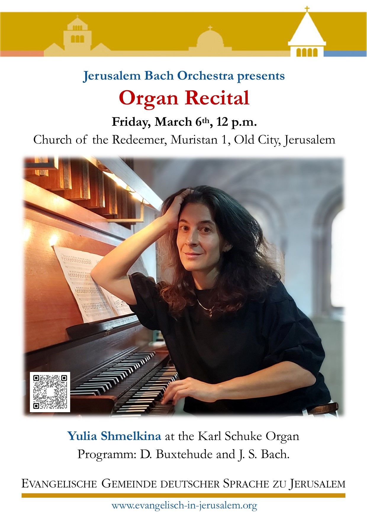 Eintritt frei, Ausgangskollekte Programm: Vincent LĂŒbeck (1654-1740), Prelude in G minor, LubWV12 Johann Sebastian Bach (1685-1750), Chorale Prelude “Nun komm’ der Heiden Heiland”, BWV 659 Johann Sebastian Bach (1685-1750), Prelude in E-flat major, BWV 552, I Johann Sebastian Bach (1685-1750), Chorale Prelude “O Mensch, bewein dein Sunde groĂ”, BWV 622 Johann Sebastian Bach (1685-1750), Fugue …