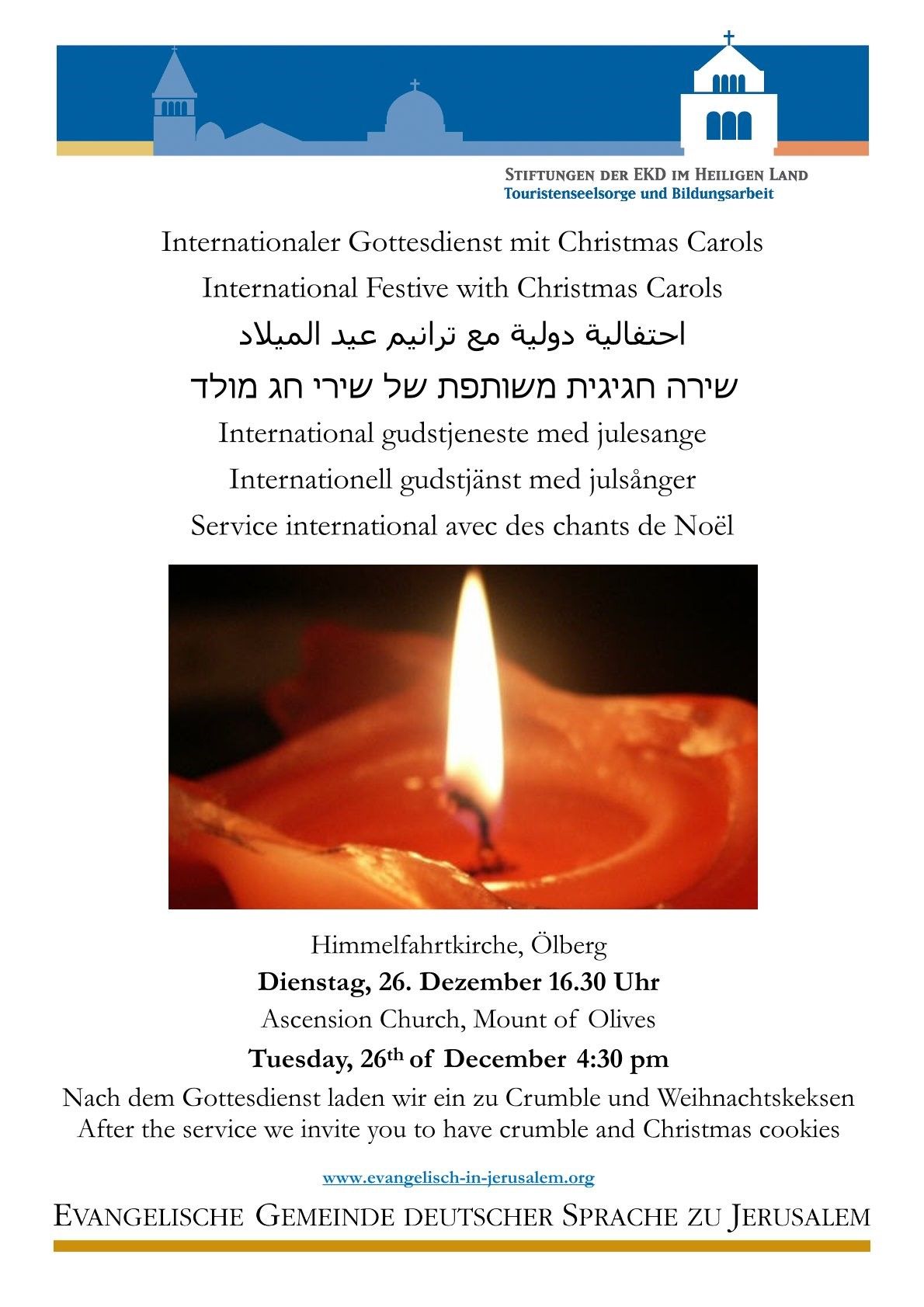 Gründonnerstag Internationaler Gottesdienst in deutscher, arabischer, dänischer und englischer Sprachemit Abendmahlsfeier in der Erlöserkirche, Altstadt von Jerusalem Im Anschluss an den Gottesdienst gehen wir die Via Dolorosa zurück und durch das Löwentor zum Garten Gethsemane. Dort versammeln wir uns zu einer abschließenden Gebetszeit. Predigt: Bischof Dr. Sani Ibrahim Azar, Pfarrerin Ines FischerMusik: Kirchenmusikdirektor Peter-Michael Seifried