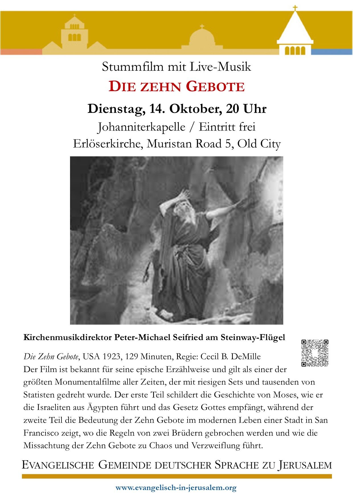 Regie: Cecil B. DeMille, 112 Minuten Musik am Steinway-Flügel:  KMD Peter-Michael Seifried Film und Musik: Eintritt frei Über den Film Der “König der Könige” ist ein amerikanischer epischer Film mit synchronisiertem Ton aus dem Jahr 1927, der von Cecil B. DeMille produziert und gedreht wurde. Er zeigt die letzten Wochen Jesu vor seiner Kreuzigung und …
